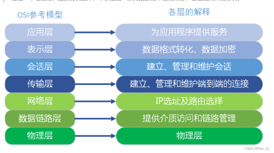 7. 应用层:网络服务与最终用户的一个接口。这一层为用户的应用程序(例如电子邮件、文件传输和 终端仿真)提供网络服务。