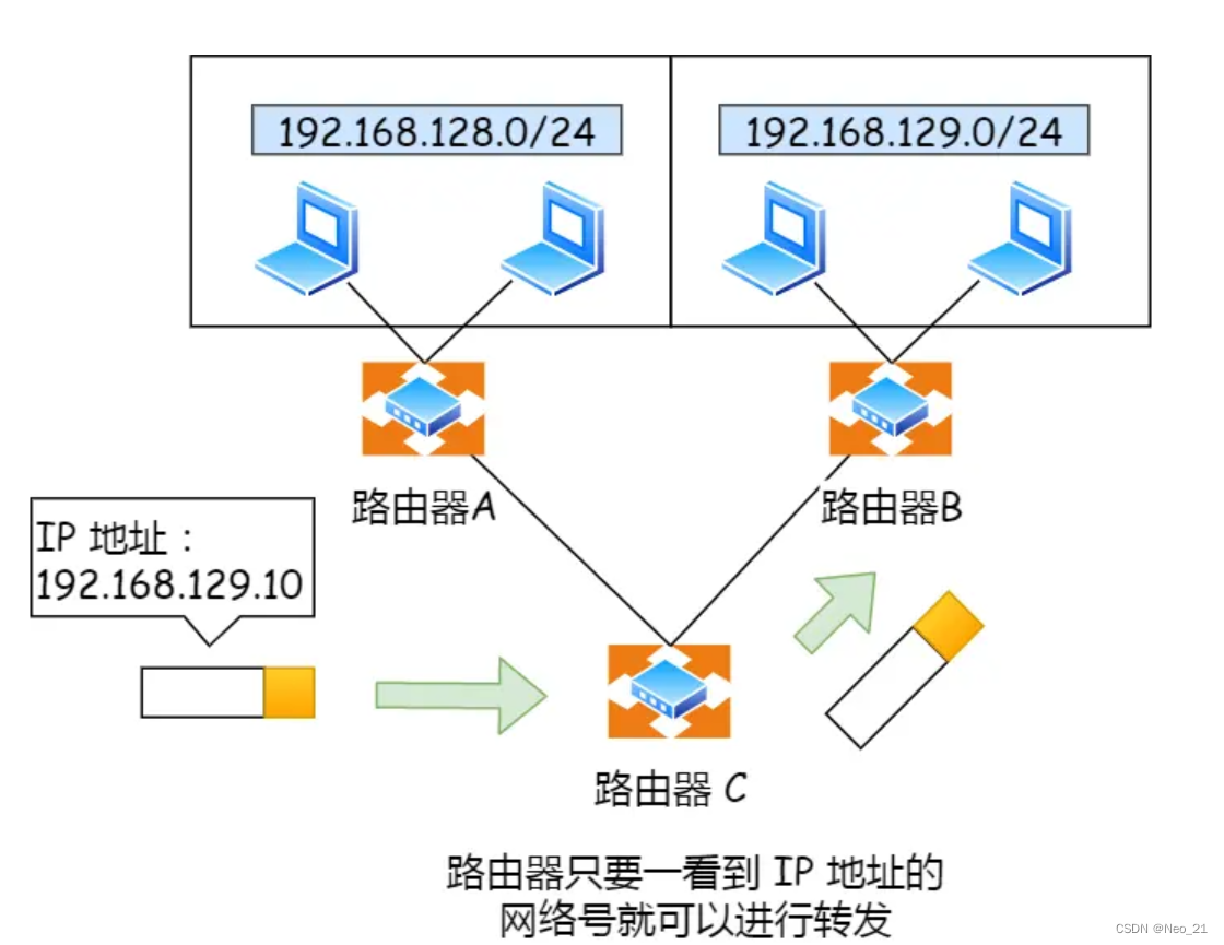所以,IP 协议的寻址作用是告诉我们去往下一个目的地该朝哪个方向走,路由则是根据「下一个目的地」选择路径。寻址更像在导航,路由更像在操作方向盘。