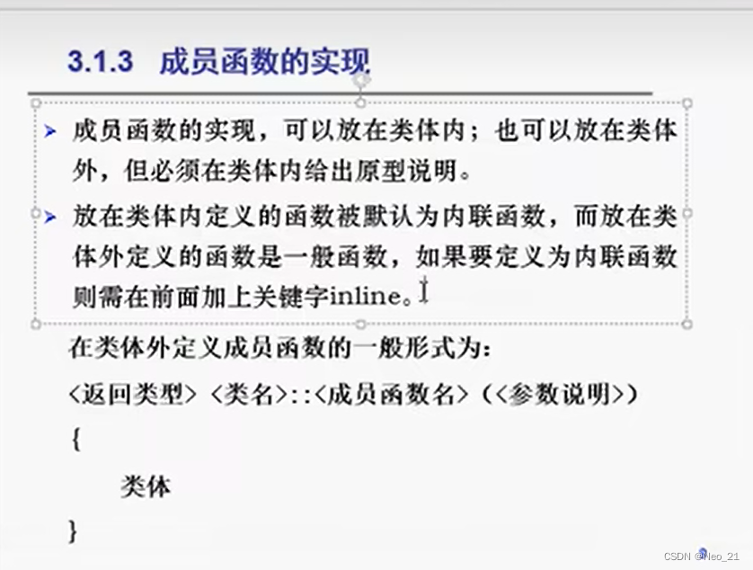 关键:在类体外定义成员函数