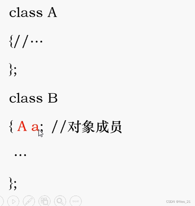 A的对象a是B的数据成员。
