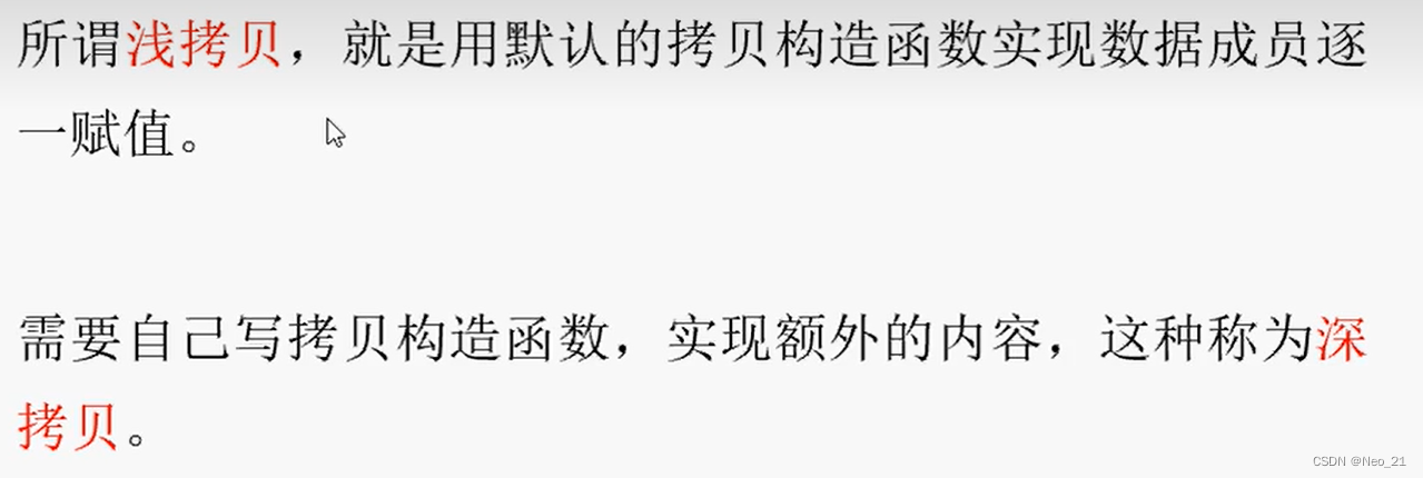 - 如果一个类中含有指针类型的变量,浅拷贝会出现错误 ,需要自己写拷贝构造函数。这种拷贝就是深拷贝。