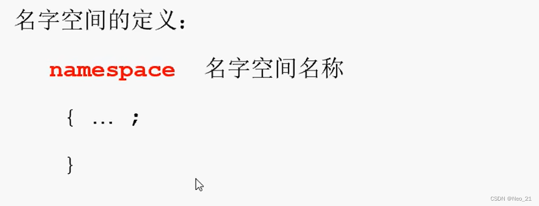 说明:名字空间可以在全局作用域或其他作用域(另一个名字空间)内部定义,但不能在函数或类的内部定义。