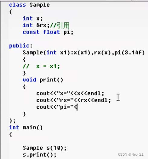 冒号后面就是成员初始化表:可以使用引用&,