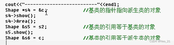 运行时才知道s4指向c, c 时circle类型的,所以才会调用circle中的show()