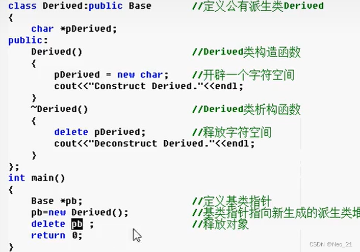 pb是base 的指针,所以delete pb时只会释放基类的空间。