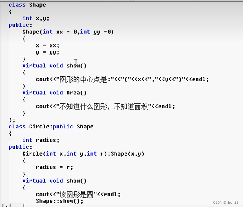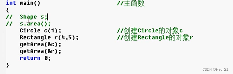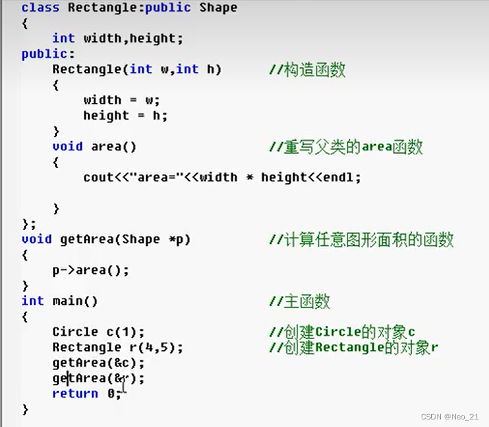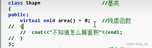 在基类中定义的area()函数,只是为了后面提供一个统一的接口,实现多态。