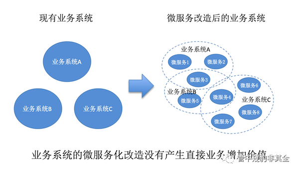 微服务产品着力点是对业务系统进行改造,带来好处是微服务化之后迭代周期缩短、对业务响应加快,但直接的业务增量价值不明显。况且考虑到改造过程带来的风险和成本投入,微服务改造自然阻碍重重。除非是新建系统或者是有些系统已经到了不得不改造的地步,否则很难说服决策者去承担这样风险和成本。