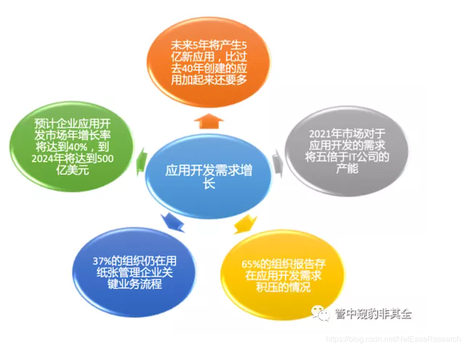 从国内的情况来看,伴随着工业互联网新基建政策的落地,企业数字化和信息系统建设的需求会逐步释放,将进一步加大企业应用开发需求和有限的生产力之间的矛盾。