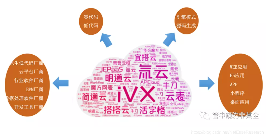 在国内,低代码领域创新氛围也相当兴盛,各类企业正从各自擅长的领域切入低代码市场。其中原生低代码初创企业比传统软件厂商表现更为突出。根据不同厂商的关注点和盈利模式可以分为六类: