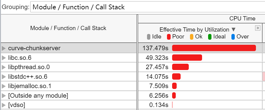 - ChunkServer自身代码耗时137秒,除此之外,其调用的外部lib库共耗时约99秒。