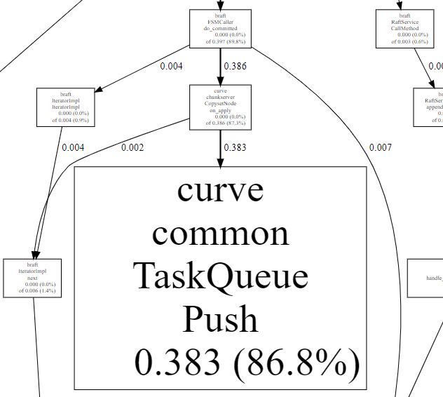 其中,curve::common::TaskQueue::Push等待锁的时间占比**86.8%,**这也符合并发控制层的逻辑。