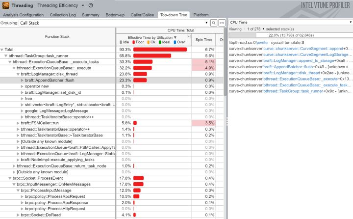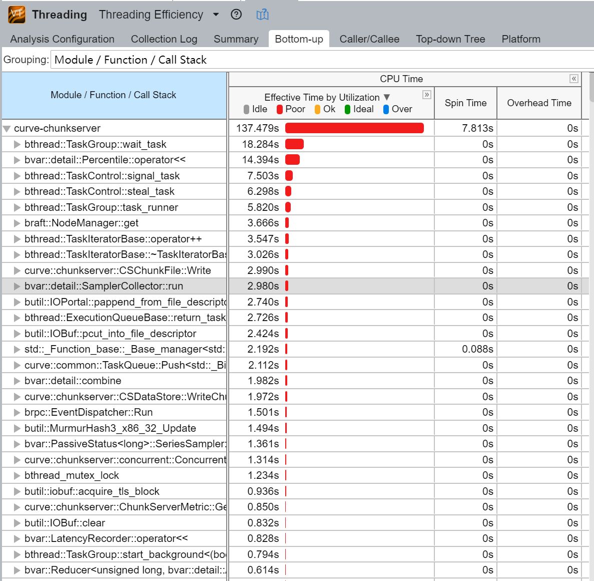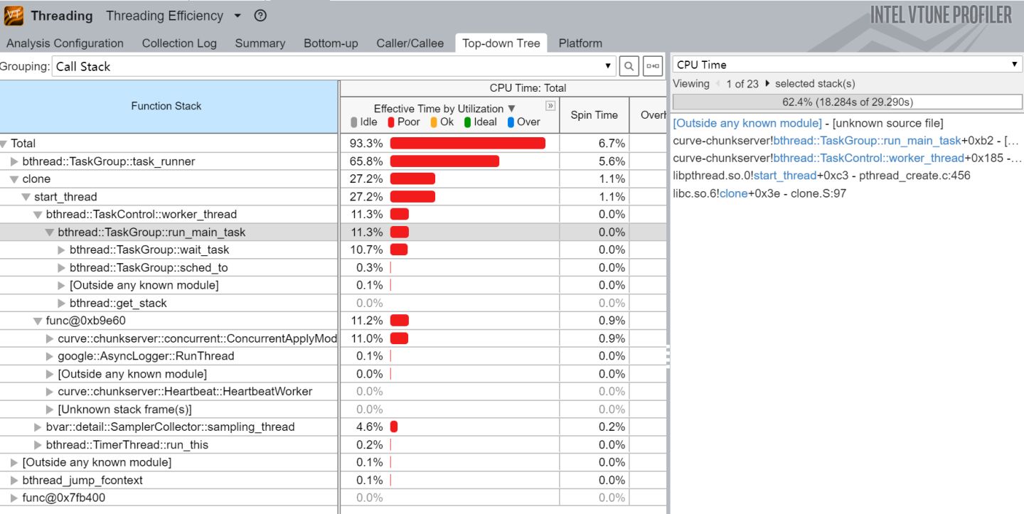 使用vtune采集ChunkServer进程的threading数据: