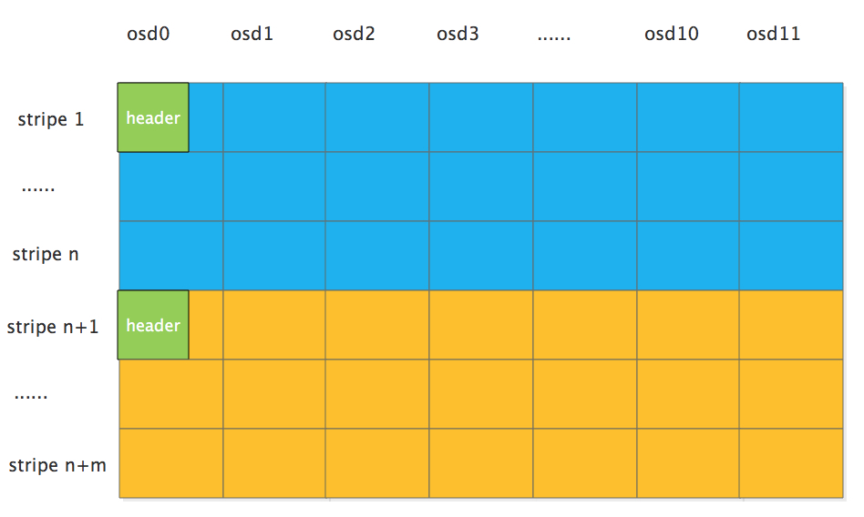 - header 集中存储在条带的 osd1 上,反序列化只需要读取 osd1 上的部分数据