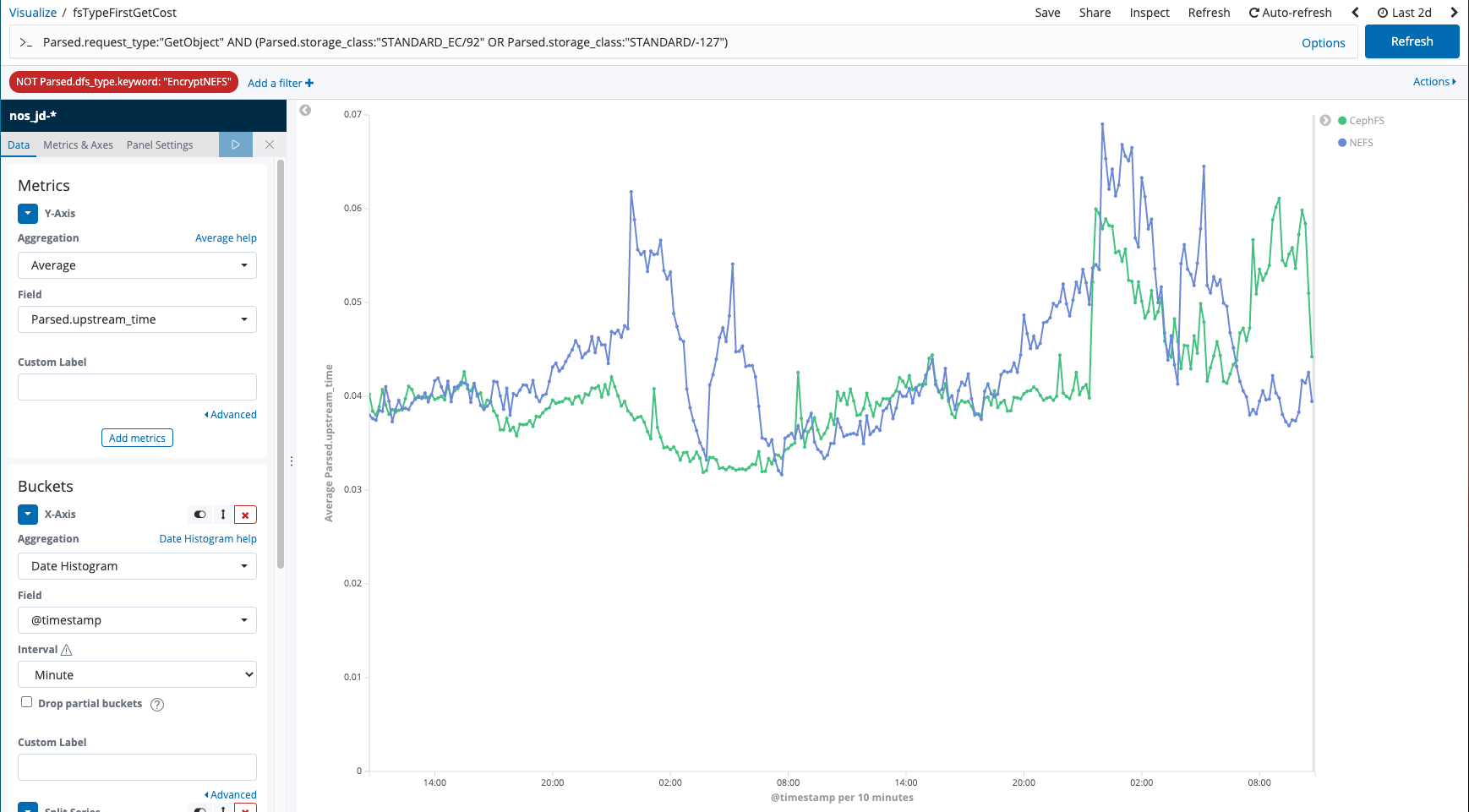 CephFs(8 +4EC):40 - 50ms目前从我们业务统计数据分析看 Ceph 的首包响应时间和 NEFS (小文件存储系统)持平,甚至更短,得益于我们的条带放置策略,对 80% 情形,对象小于 128KB 分布在单个 OSD 上,因此我们读取数据时也只需要读取单个 OSD 上的 chunk 数据。