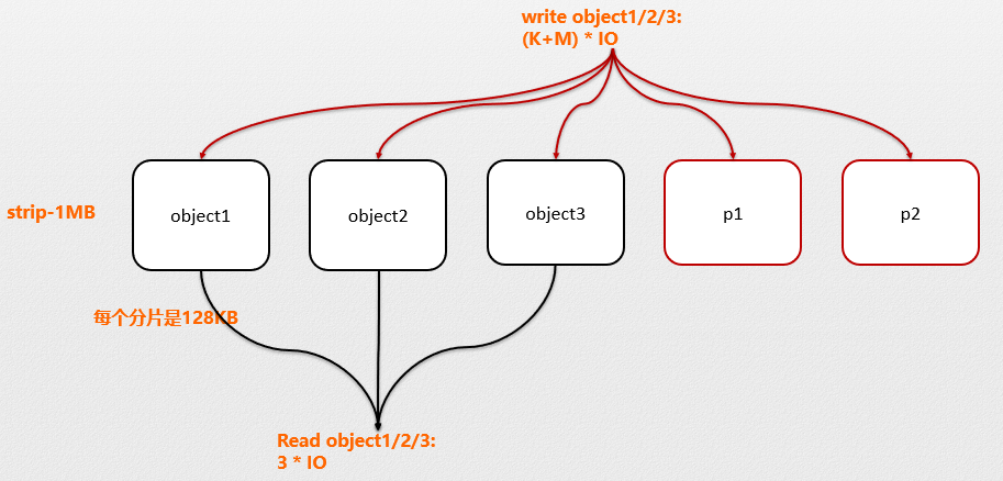 - 同时相比三副本的存储方式(不管是客户端直接写 3 副本,还是由复制组中的 master 节点接收数据后写两个 secondary 节点)写入流量减少将近 1 倍