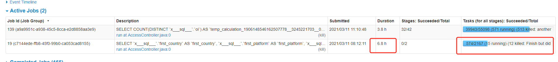超大任务侵占过多或者所有 Spark ThriftServer 的计算资源,导致其他任务延时或者卡死。