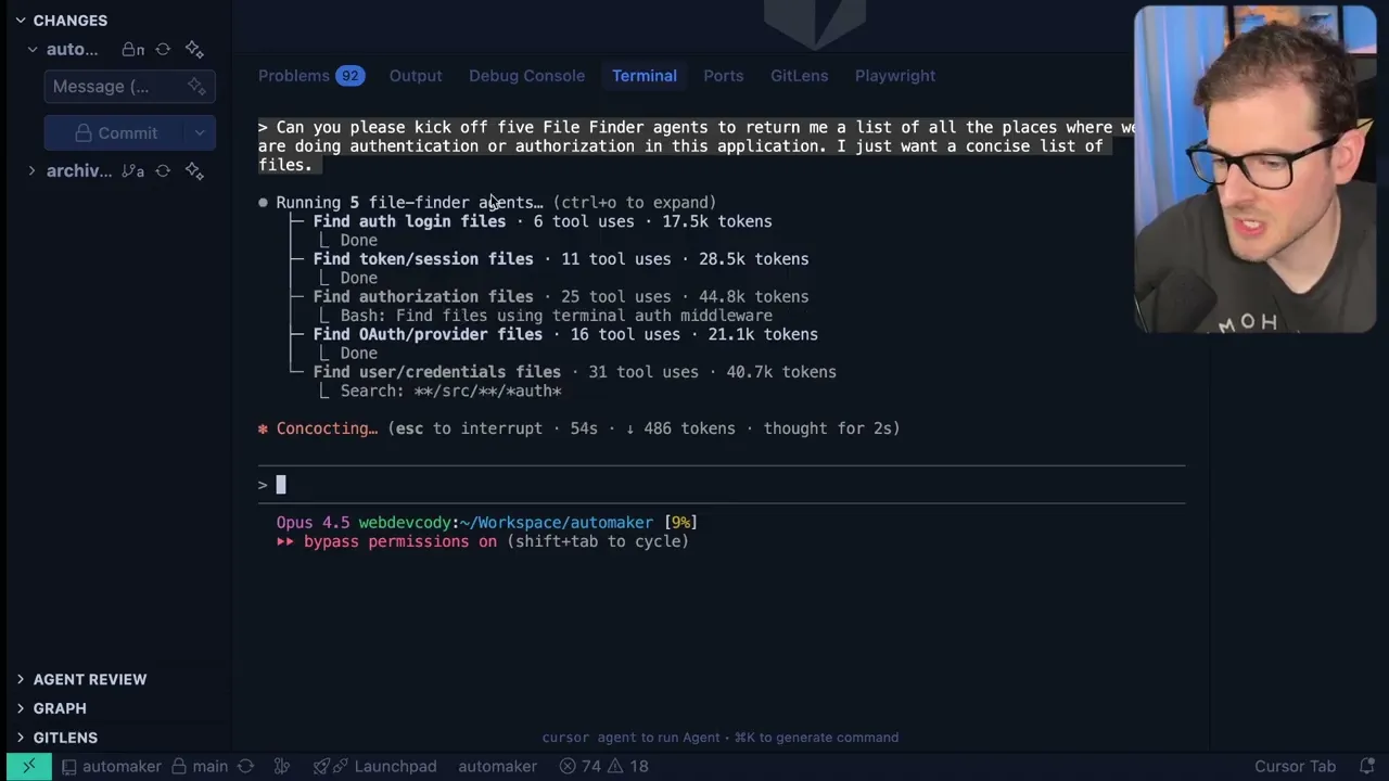 根据实际测试,当你要求 AI “找出项目中所有涉及身份验证的文件”时,它会扫描整个代码库。在主线程中完成这一步,上下文窗口的占用率可能迅速从初始状态攀升至 9% 甚至更高。紧接着,如果你要求它“审查这些文件的安全性”,它会将所有相关文件的详细内容读入上下文,导致占用率飙升至 30%,。