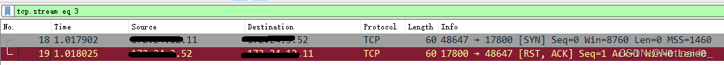 XXX.XXX.XXX.11访问XXX.XXX.XXX.52的17800端口,均被拒绝。