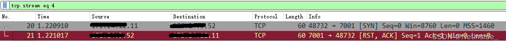 XXX.XXX.XXX.11访问XXX.XXX.XXX.52的7001端口,均被拒绝。