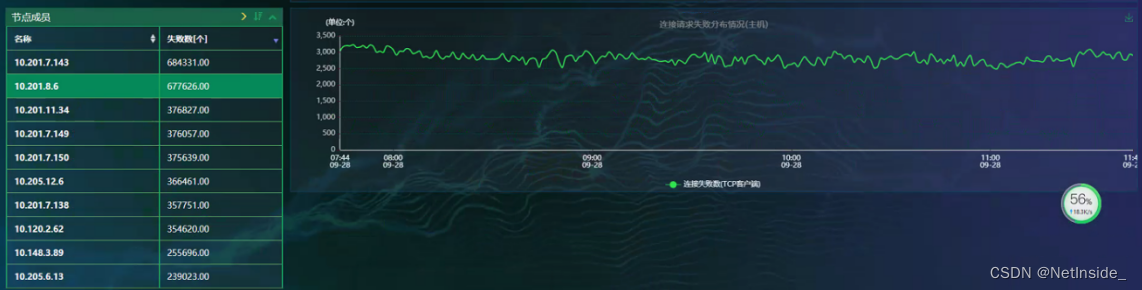 以10.201.8.6为例做详细分析。该主机每分钟向网络中发生超过3000个失败连接请求,下图为主机10.201.8.6失败连接请求分布趋势图。