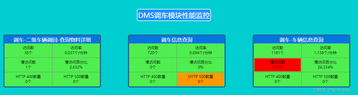 对调车模块功能监控:调车信息查询出现HTTP 500错误9个,调车-车辆信息查询出现慢访问311个。