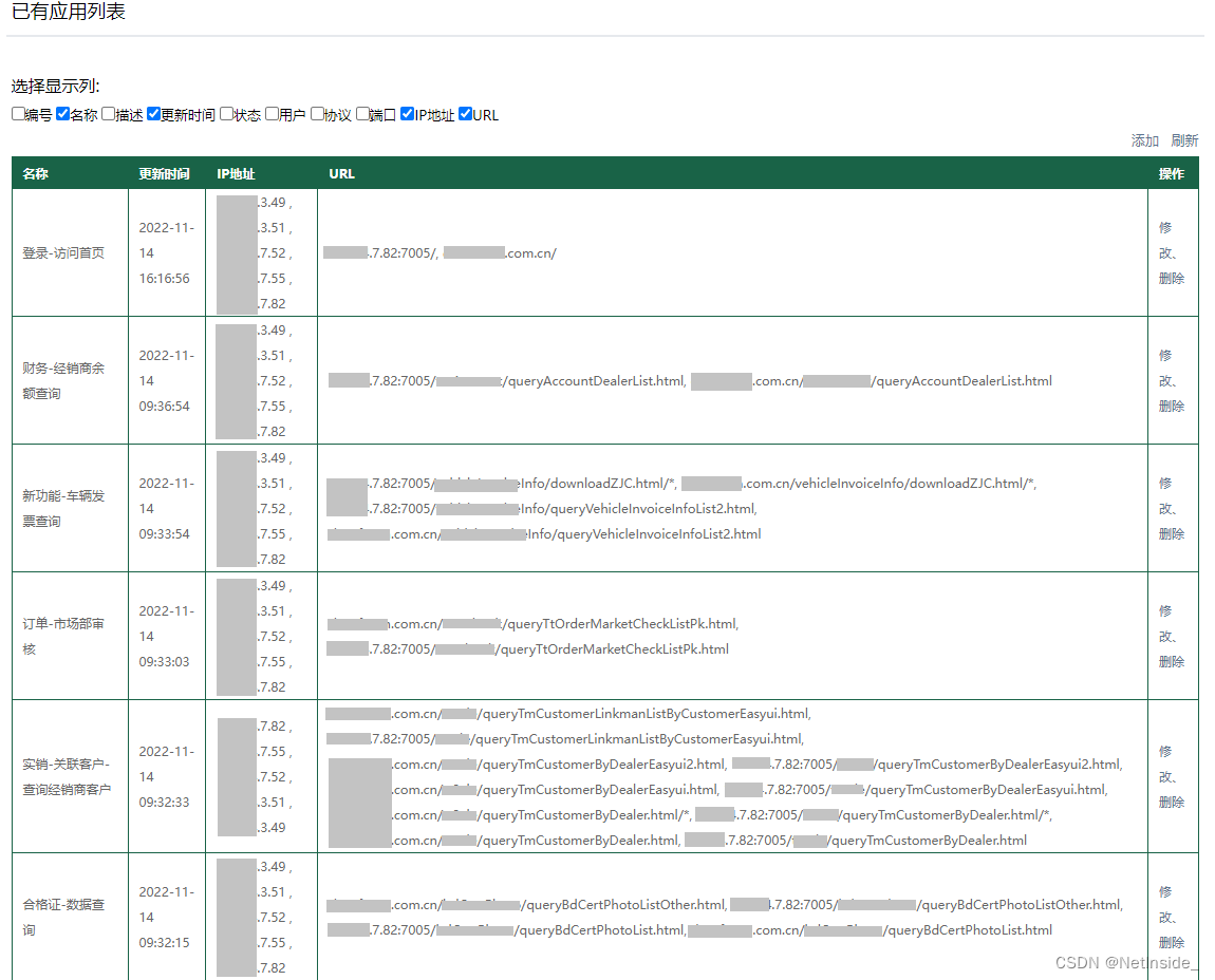 对实销模块功能监控:信息查询-车厂或经销商出现慢访问27个,信息实销信息查询出现慢访问216个,实销资料更改申请查询出现慢访问71个。