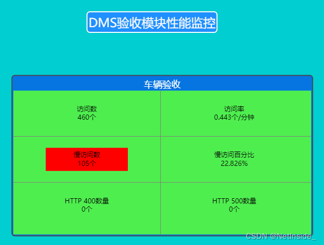 对验收模块功能监控:车辆验收出现慢访问105个。