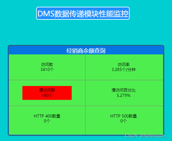 对数据传递模块功能监控:经销商余额查询出现慢访问180个。