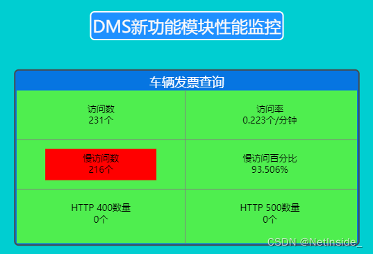 对新功能模块功能监控:车辆发票查询出现慢访问216个。