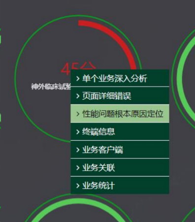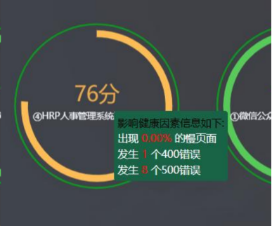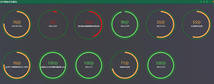 通过业务健康大屏,我们可以快速了解各关键业务在基于用户体验的性能健康状况得分,如下图: