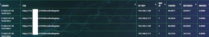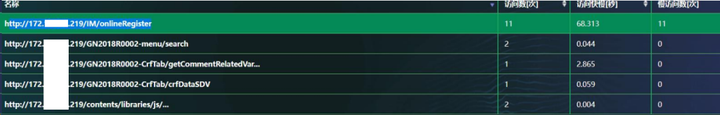 我们可以看到 http://172.16.230.219/IM/onlineRegisterp这个服务的所在请求都是慢的,那么是网络原因导致的吗?接着看展开的数据: