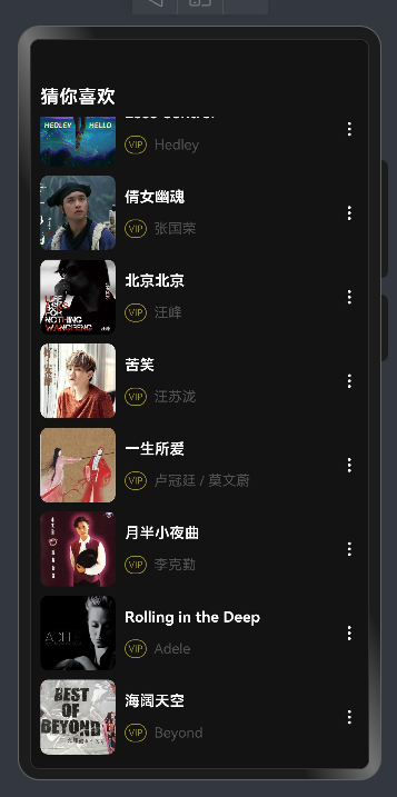 Text("猜你喜欢").font({weight:700,size:20}).fontColor('#fff').width('100%').margin({bottom:10})