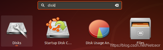 2.开机,点开左下角的应用图标,在其中搜索“disk”,选中“disks”