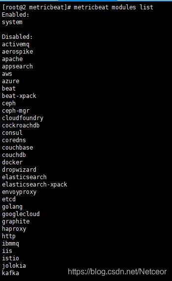 # metricbeat modules list