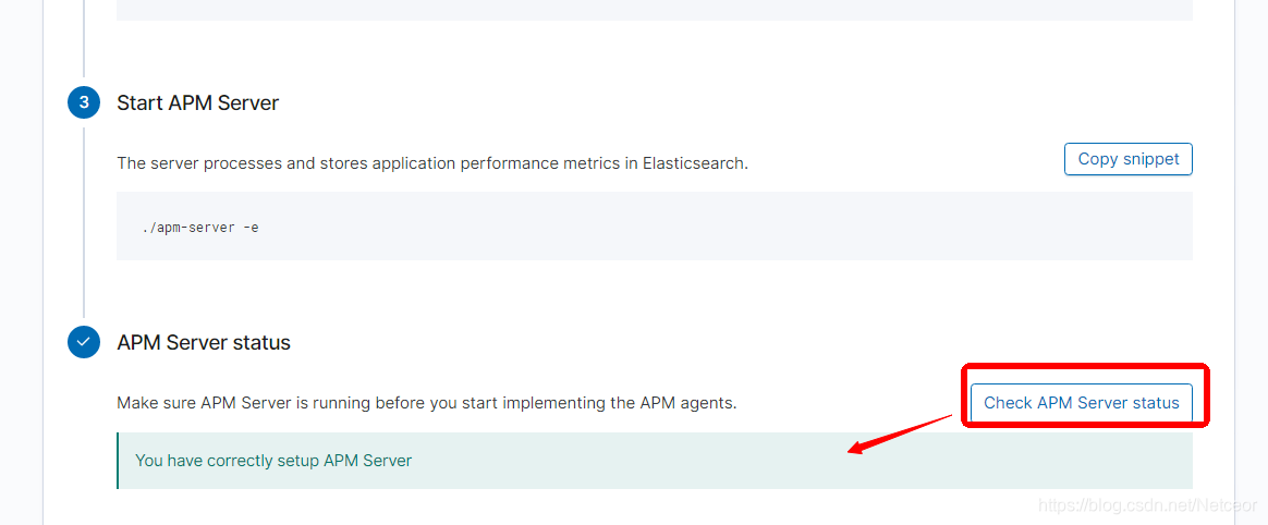在Kibana查看,单击check按钮,发现成功检测到我们的APM