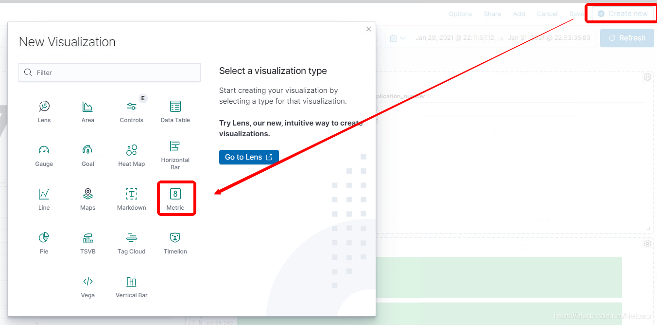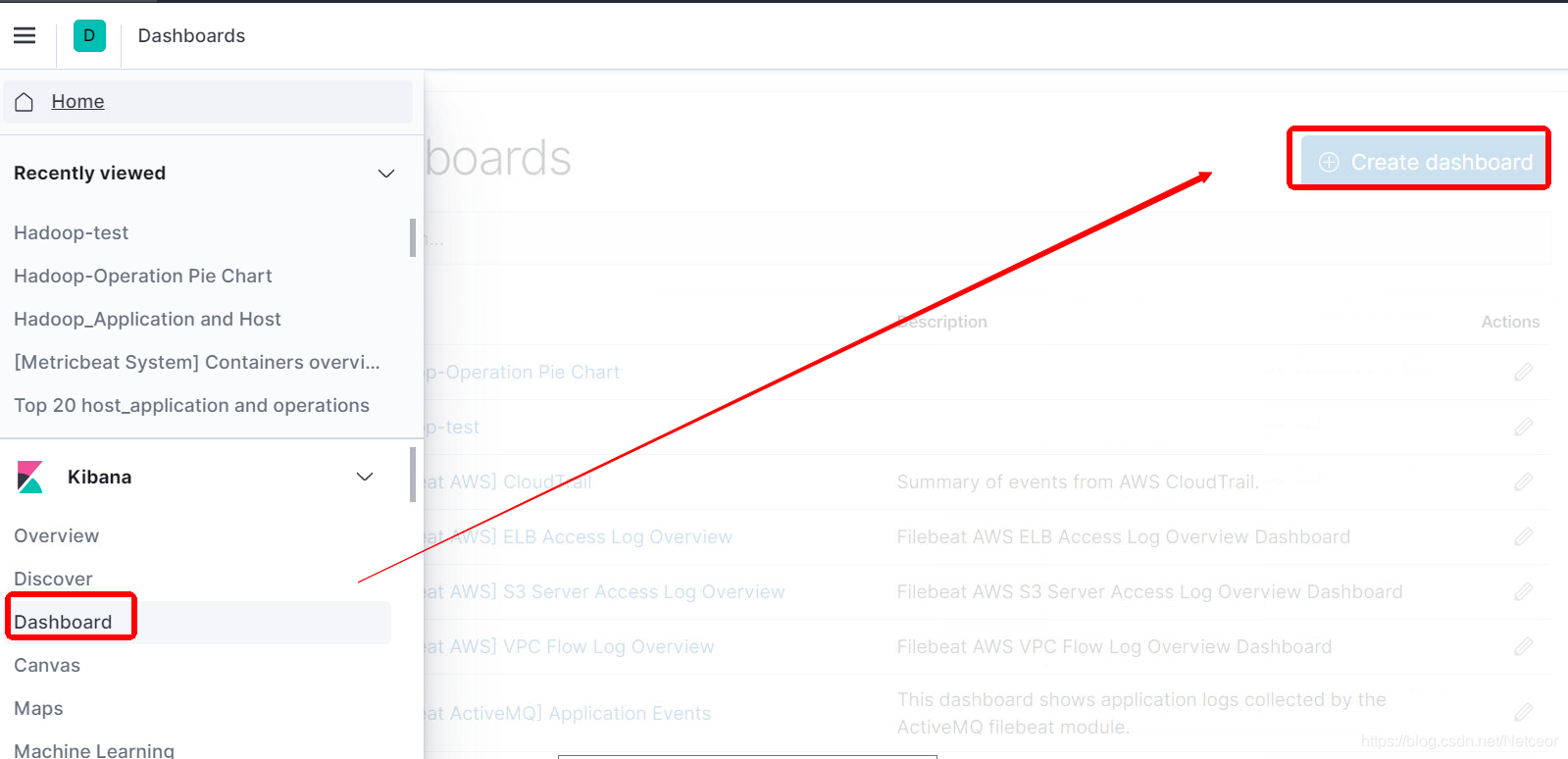 先简单说一下船舰DashBoard的过程,进入Kibana→左侧选择DashBoard→右上角Create DashBoard→Create New可以插入新的图像