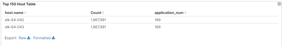 (2)对host数量去重计数,得到在最多host上运行的application编号以及相关数据总量(表格)