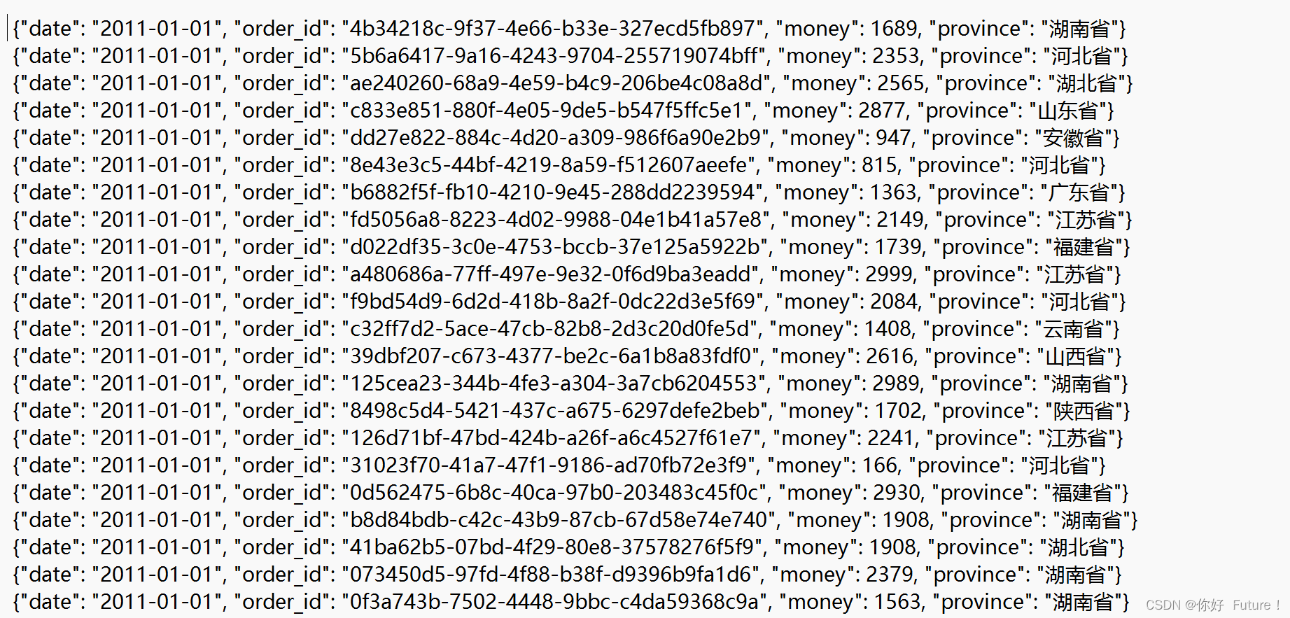 record_list.append(record(json_dict['date'], json_dict['order_id'], json_dict['money'], json_dict['province']))