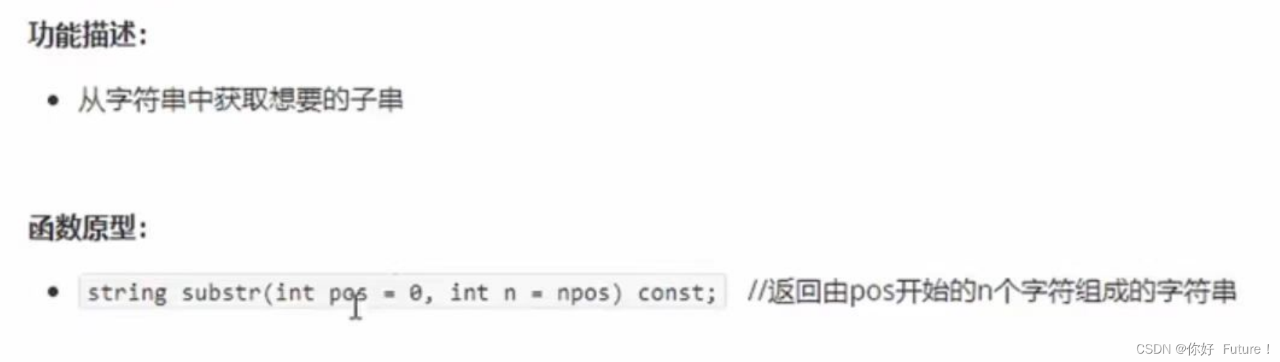 - string(const char* s); //使用字符指针s初始化