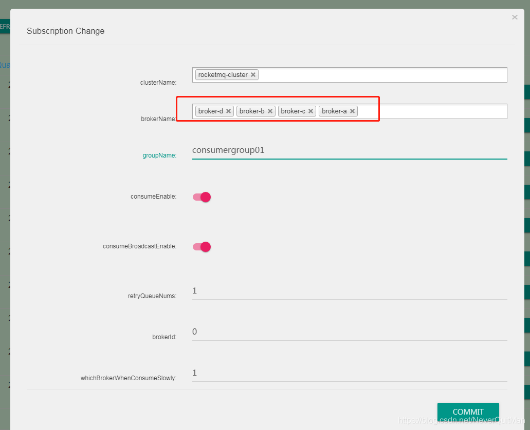 consumer配置:将borker-d加到原来三主三从中,如果不做此项配置,消费组不会从broker-d中消费数据