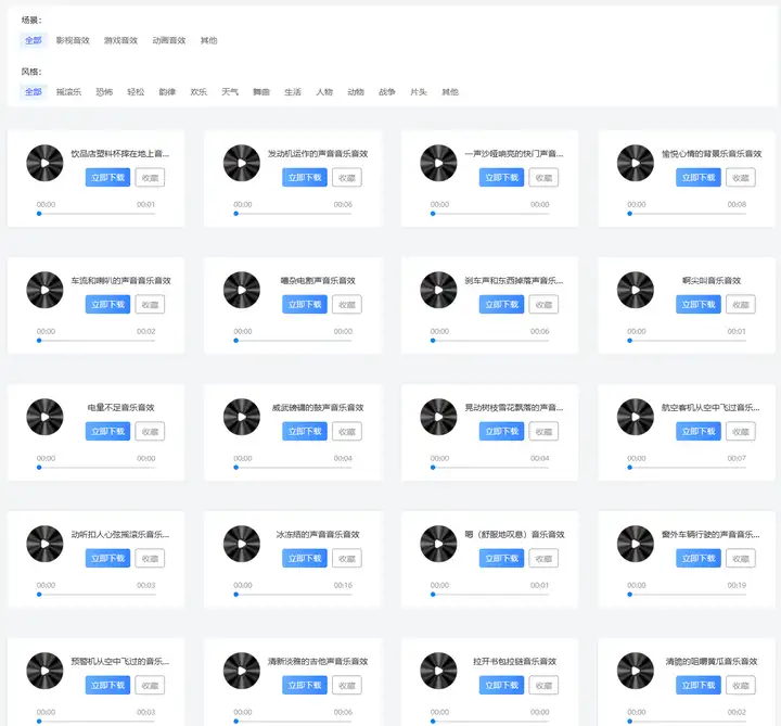 除此之外,网站还有很多可商用的音效素材,这些音效涵盖了很多场景,网络火爆的音效这里都能找到,重点是全部免费,非常nice。