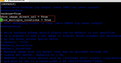 1.在controller控制节点上修改/etc/glance/glance-api.conf镜像配置文件,把show_image_direct_url 参数设置为True。