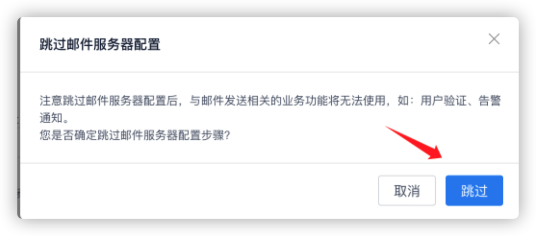 邮件服务器的配置,此处先【跳过配置】: