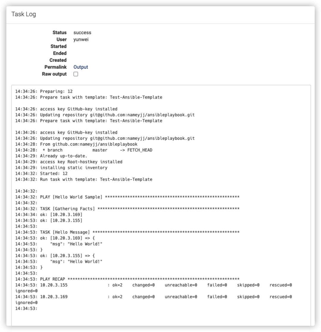 按上面的步骤操作,可以完成一个基本的Ansible任务的运行。