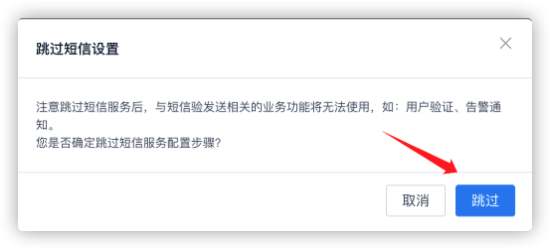 短信服务配置,我们继续点击【跳过配置】: