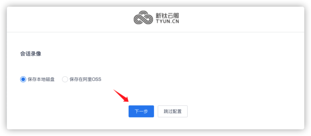 因为TiOps有堡垒机的功能,这边选择录像存放在哪里,点击【下一步】:
