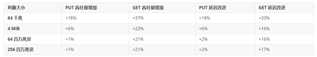 注意: 生产环境中的对象存储工作负载往往是读取密集型(GET 占主导地位)。此模式与常见用例一致,包括分析、数据湖和音/视频交付系统。