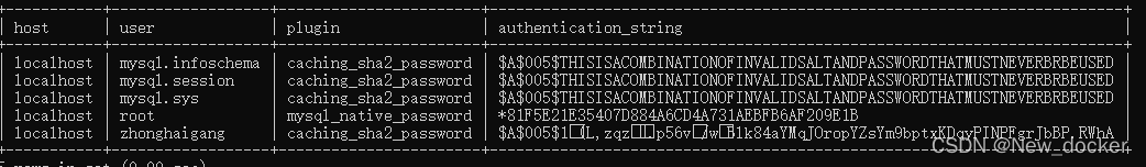 select host,user,plugin,authentication_string from mysql.user;