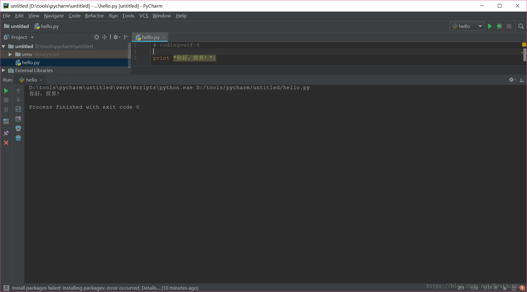 SyntaxError: Non-ASCII character '\xe4' in file D:/tools/pycharm/untitled/hello.py on line 1, but no encoding declared; see http://www.python.org/peps/pep-0263.html for details