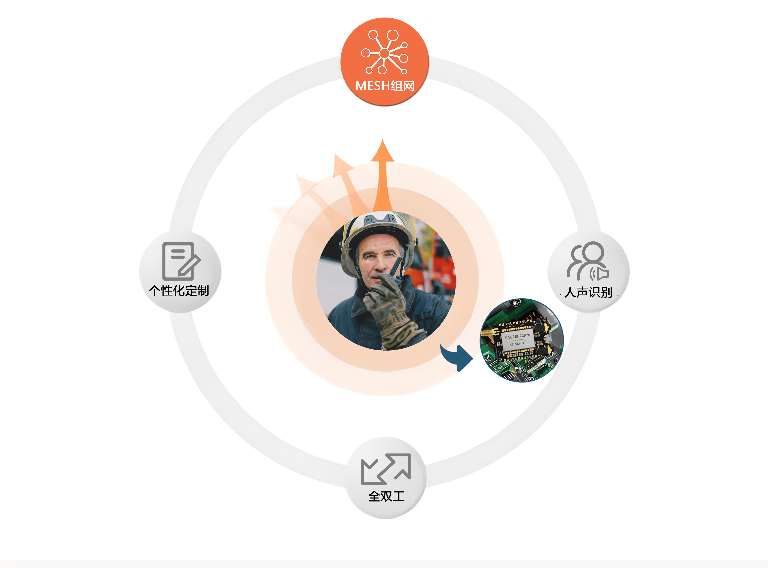 模块不仅集成了 回声消除与智能降噪算法,有效解决火场、隧道等 80–100 dB 背景噪声干扰,还通过 高灵敏度射频前端与MESH组网技术,保障在高层建筑和地下空间的通信覆盖。与此同时,模块具备 8 路并发发射、低延迟传输与低功耗待机 的特性,使其能够兼顾复杂救援任务中对 效率、续航与可靠性 的多重要求。